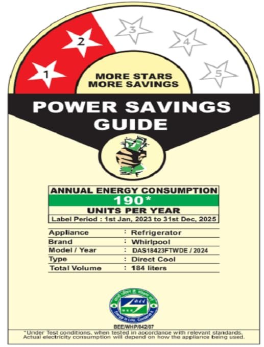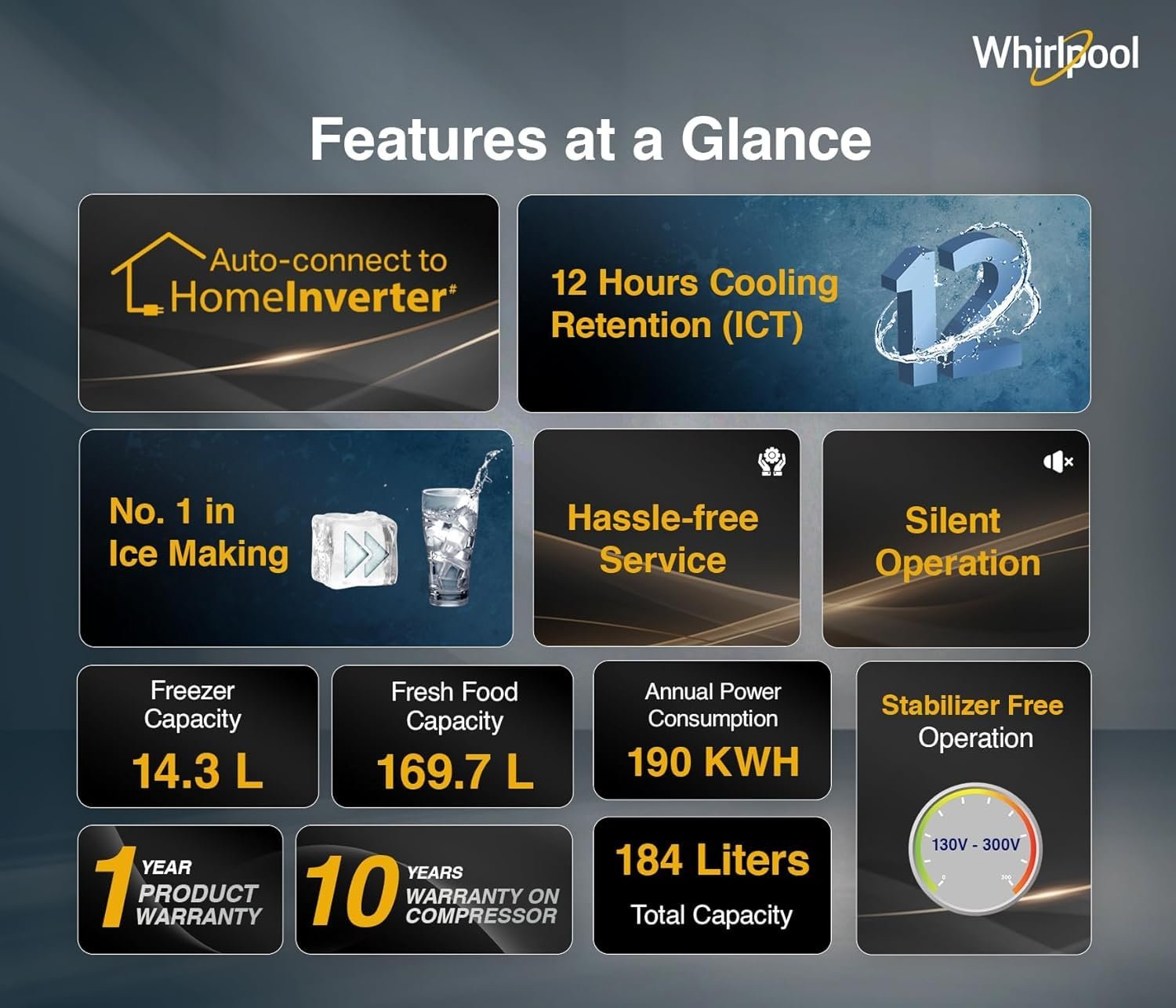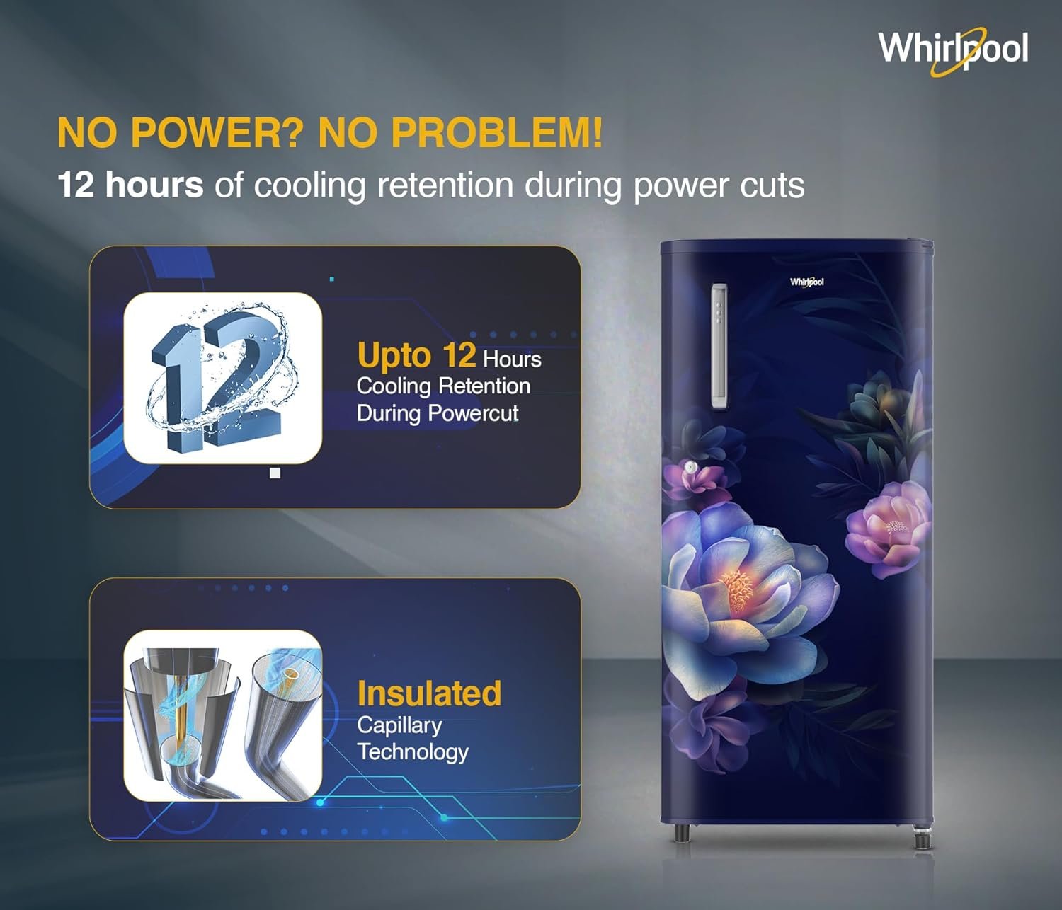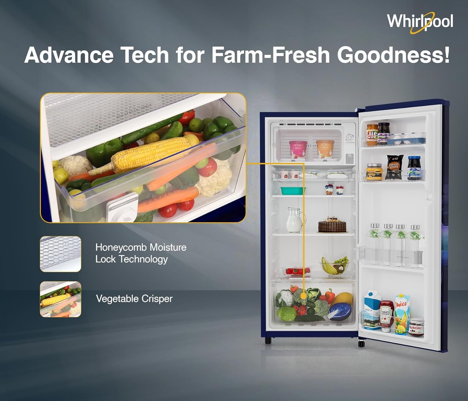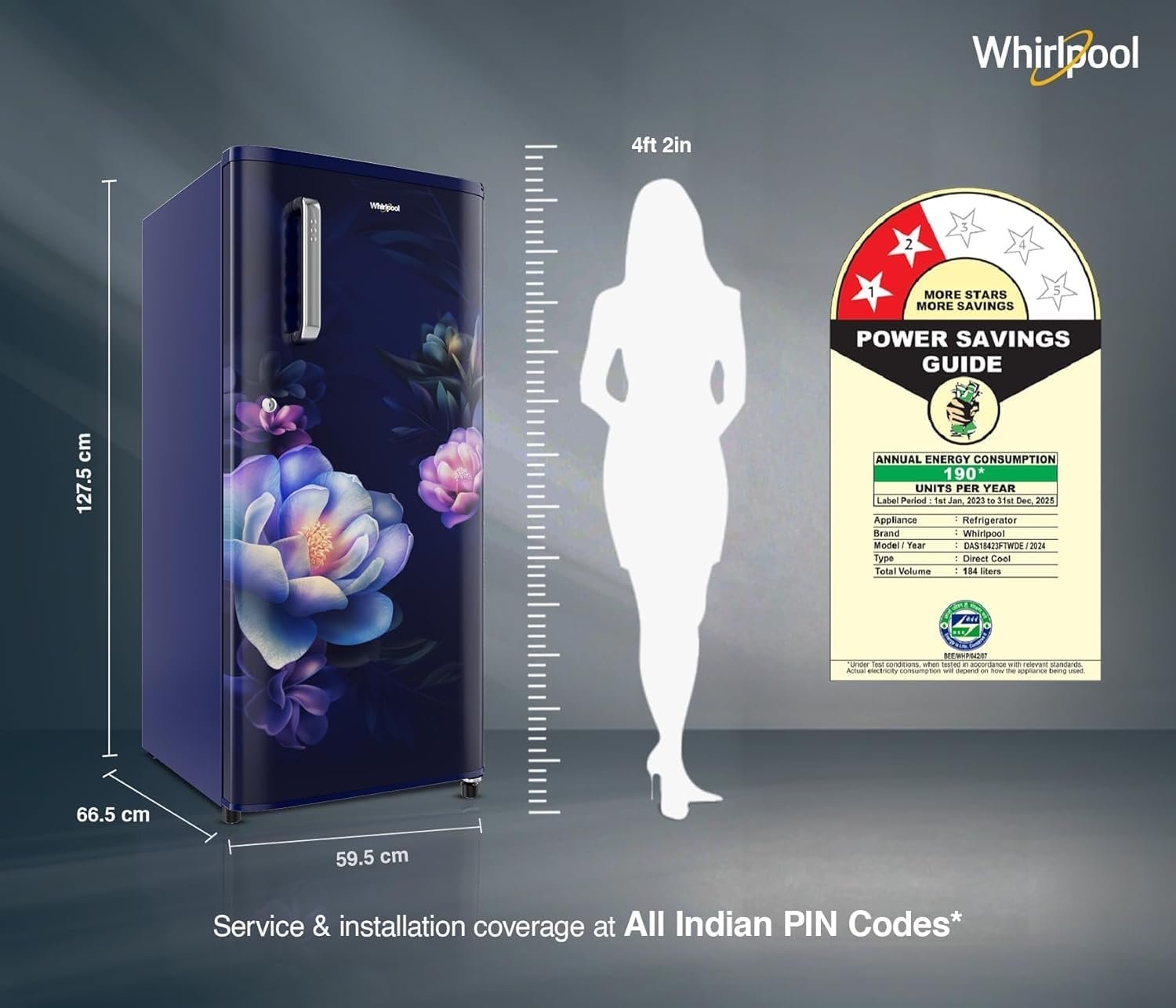 - Single door refrigerator with Capacity: 184 liters for families with 2 -3 members